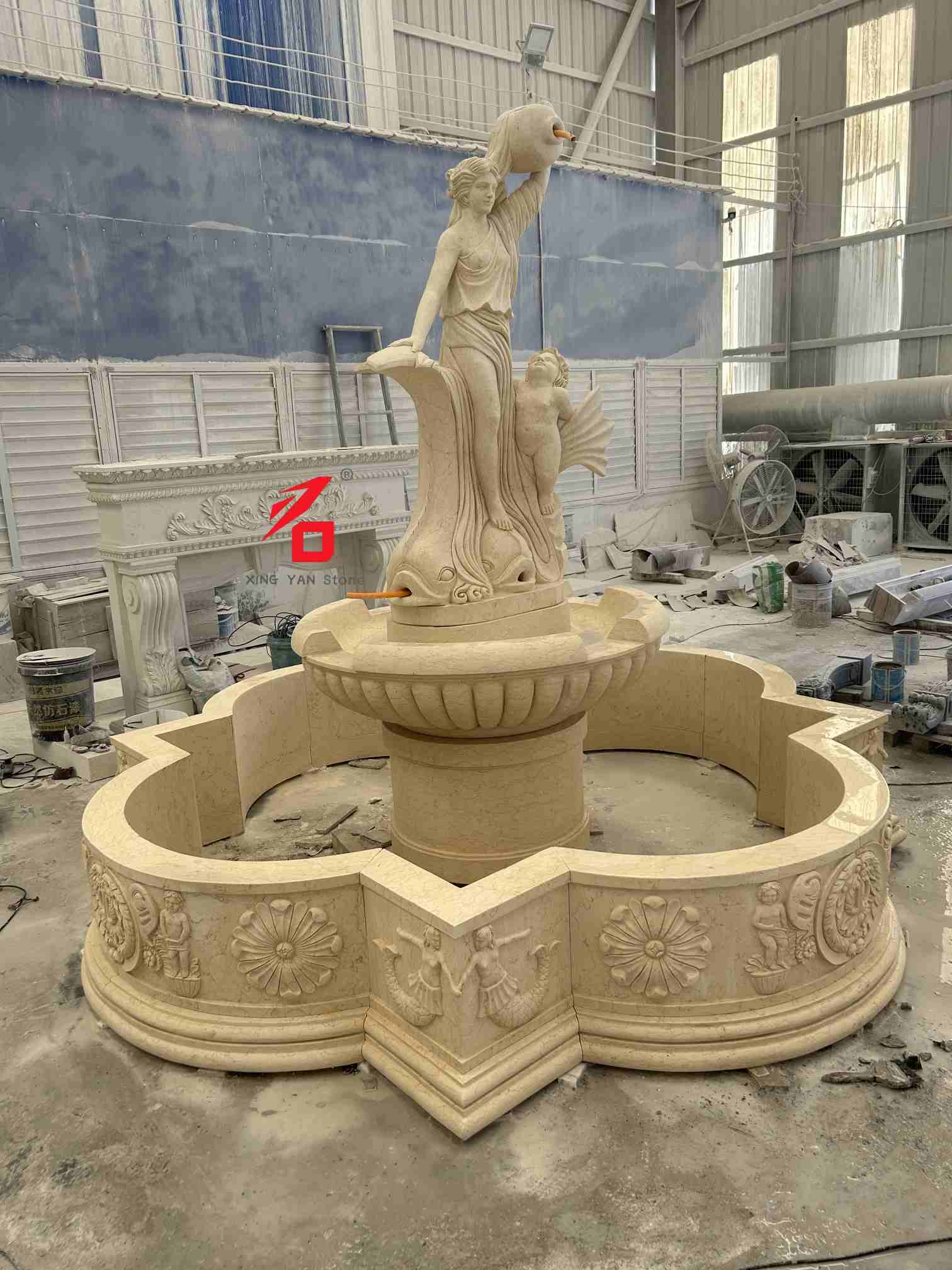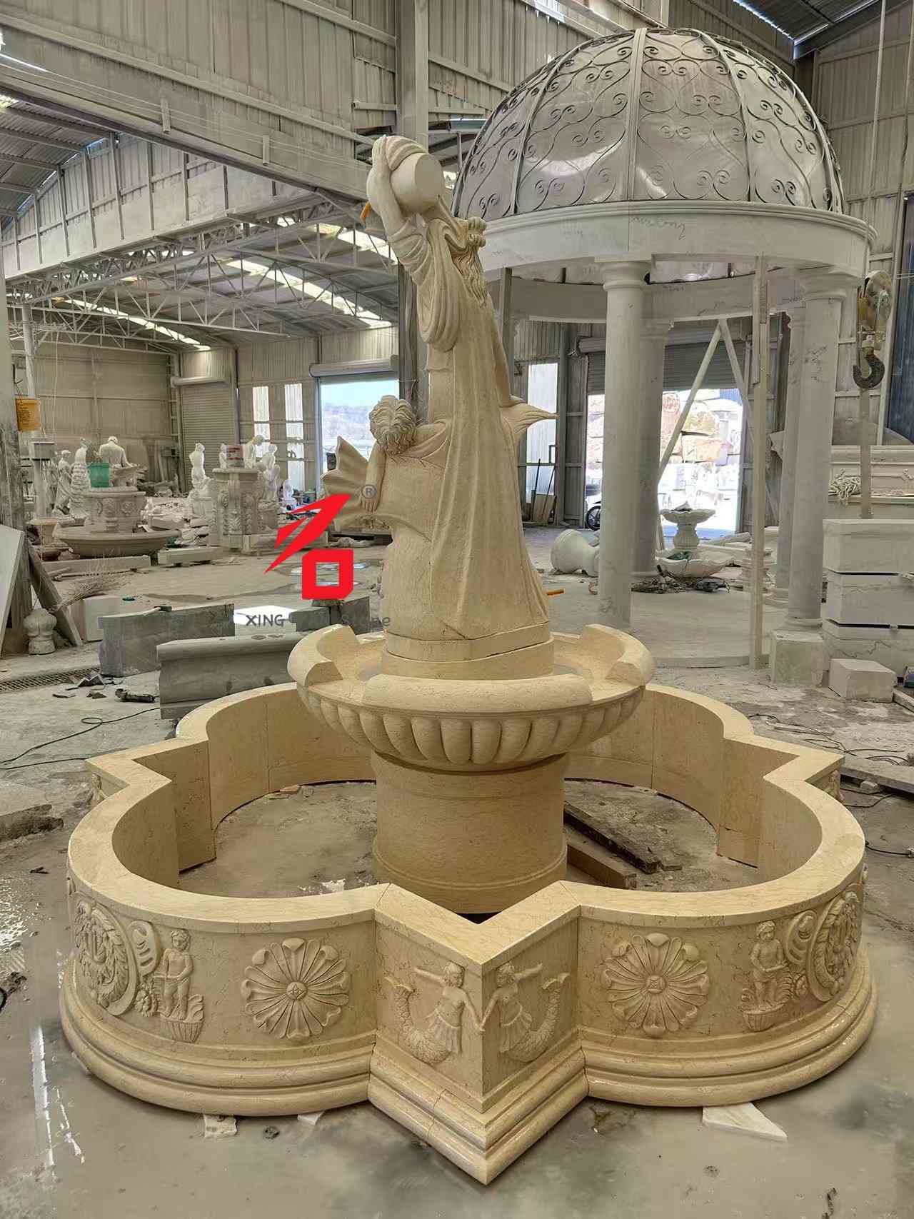 گزینه های سنگ: گزینه های سنگ سفارشی شامل سنگ مرمر بژ، مرمر سفید، ماسه سنگ و سایر سنگ های طبیعی است. بافت ظریف، رنگ گرم و مقاومت قوی در برابر هوا، دوام و جذابیت زیبایی چشمه را برای استفاده طولانی مدت در فضای باز تضمین می کند. کاردستی حکاکی: با استفاده از تکنیکهای سنتی کندهکاری، مجسمهسازان باتجربه با دقت تمام جزئیات، از حالت چهره الهه و پارچهکاری گرفته تا زیور آلات کودک و ماهی شکل را میسازند و بافت هنری و سهبعدی مجسمهسازی کلاسیک اروپایی را به نمایش میگذارند.